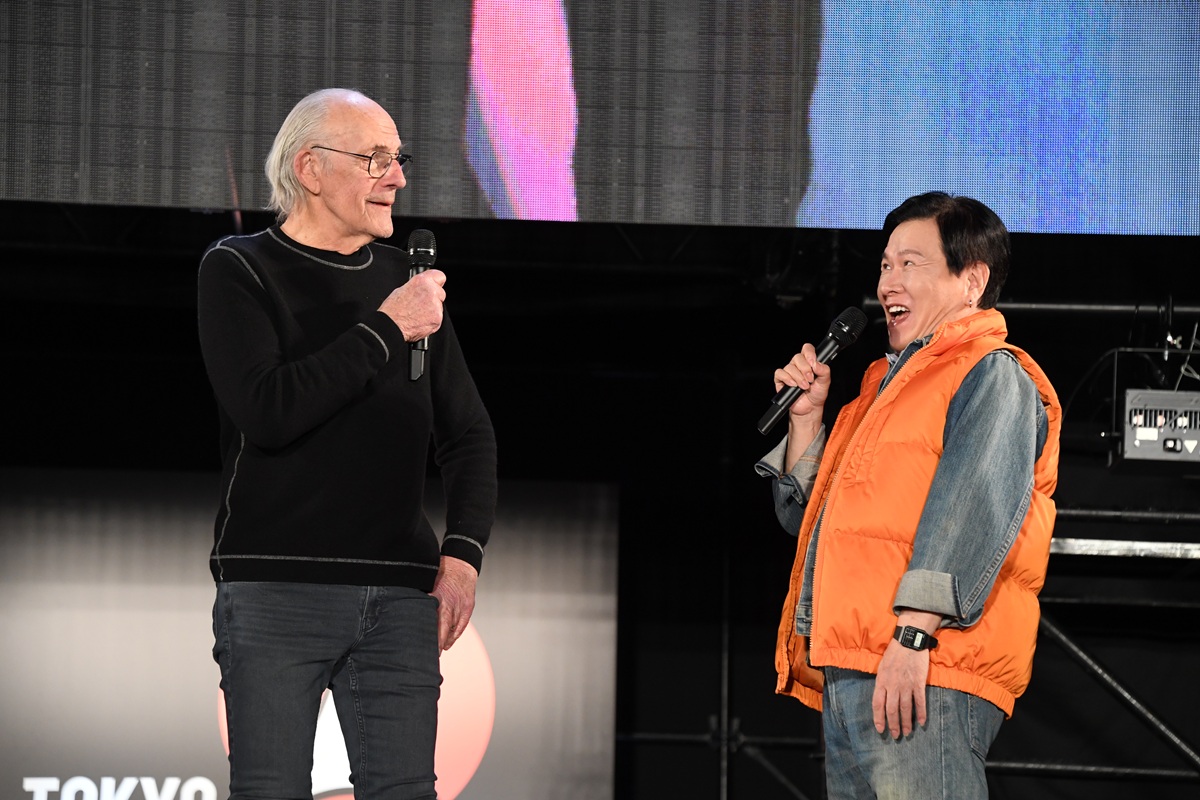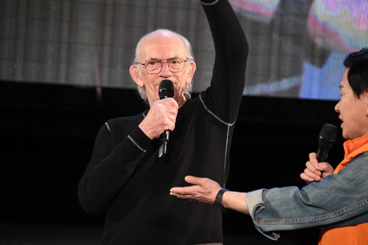 そして三ツ矢が、劇中のマーティさながらに「ママ!ビフ!ジェニファー!ドク!」と呼び込むと、ロレイン役のリー・トンプソン、ビフ役のトム・ウィルソン、ジェニファー役のクローディア・ウェルズ、そしてドク役のクリストファー・ロイドが次々とステージに登場。映画の歴史を作ったレジェンドたちと“日本のマーティ”が並び立つ奇跡の光景に、会場のボルテージは最高潮に達しました。