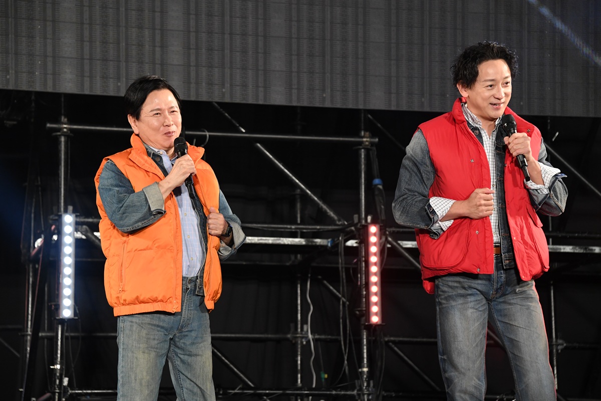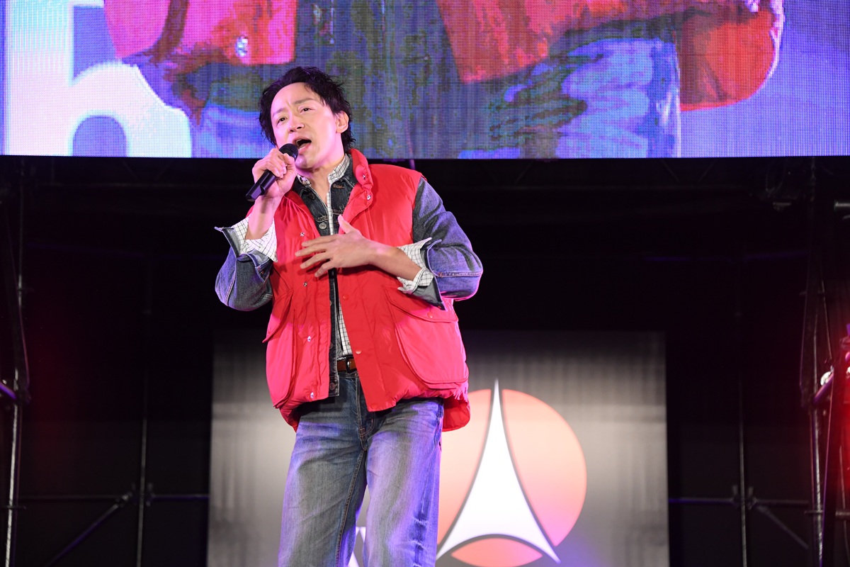 MCのLiLiCoから、イベント当日の12月7日が日本における『BTTF』公開記念日(1985年)であることに触れると、会場の期待感は一気に高まりました。すると突如、本作の主題歌「パワー・オブ・ラブ」のイントロが鳴り響き、東京コミコン2025アンバサダーの山本耕史がマーティ風の衣装に身を包み登場。本作の大ファンを公言する山本による、魂のこもったパフォーマンスに、客席の熱気は早くも急上昇しました。続いて、スペシャルゲストとして“日本のマーティ・マクフライ”こと、声優の三ツ矢雄二がステージに招き入れられました。三ツ矢も山本と同じくマーティ風のダウンベストを着て登場し、「Wマーティでやってきました!」と笑顔で登場すると、往年のファンからは大きな歓声が上がりました。